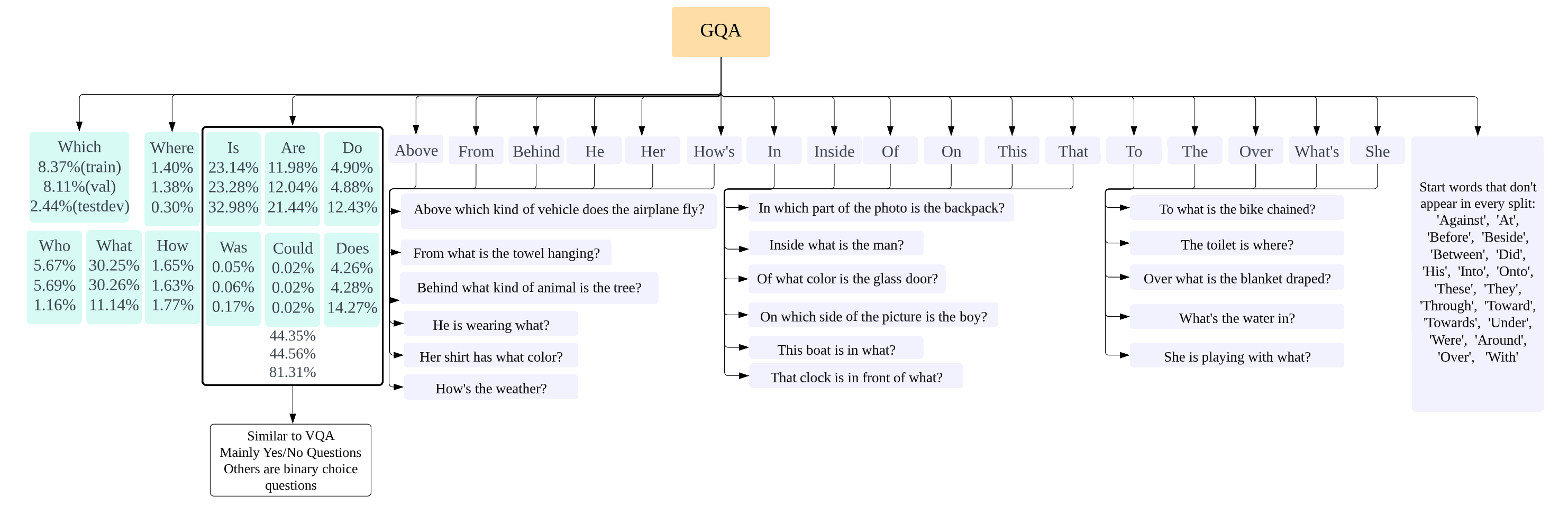 GQA question distribution analysis.